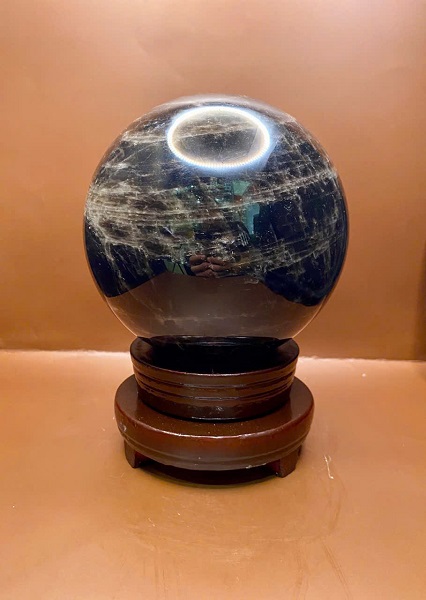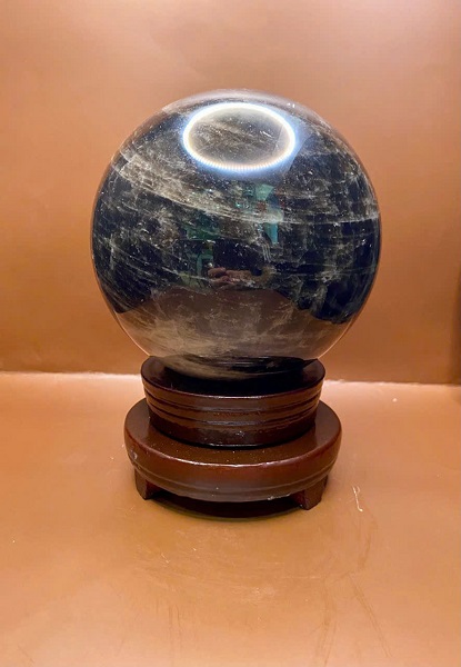 Quả cầu đá thạch anh đen phong thủy - Kèm chứng thư kiểm định đá quý thiên nhiên
