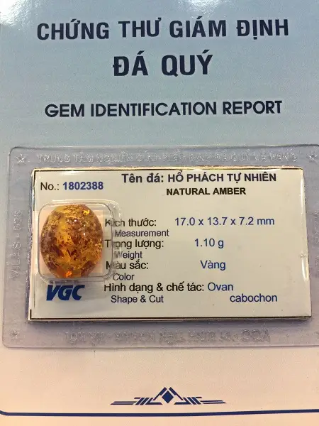 Các bạn thấy đó sản phẩm hổ phách bán ra tại Phong Thủy Vạn Tài đã được mang đi kiểm định bạn có thể kiểm định lại tại nước ngoài đều có kết quả là hàng tự nhiên, chất lượng tốt, mầu đẹp tự nhiên, độ tinh khiết cao.