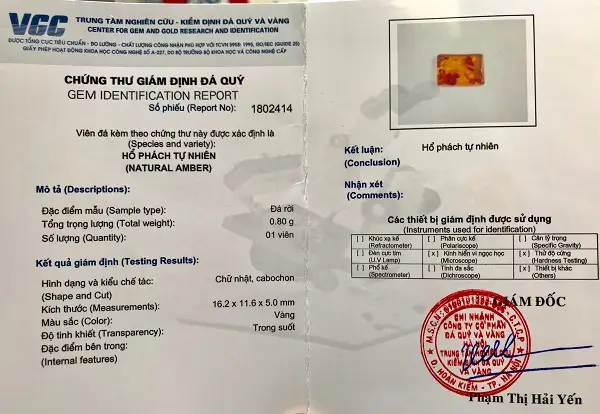 Các bạn thấy đó sản phẩm hổ phách bán ra tại Phong Thủy Vạn Tài đã được mang đi kiểm định bạn có thể kiểm định lại tại nước ngoài đều có kết quả là hàng tự nhiên, chất lượng tốt, mầu đẹp tự nhiên, độ tinh khiết cao.