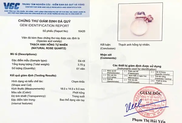 Kèm đầy đủ chứng thư kiểm định đá quý do trung tâm kiểm định đá quý Việt Nam cấp
