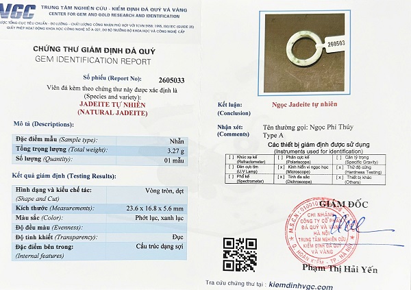 Kèm đầy đủ chứng thư kiểm định đá quý do trung tâm kiểm định đá quý Việt Nam cấp