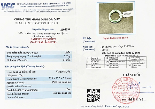 Kèm đầy đủ chứng thư kiểm định đá quý do trung tâm kiểm định đá quý Việt Nam cấp