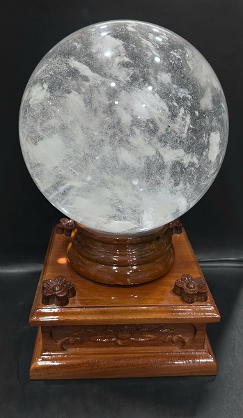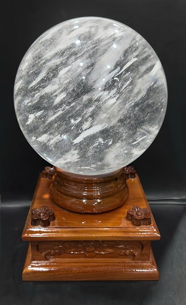 • Quả cầu đá obsidian núi lửa trắng phong thủy - Trì chú đá tại chùa thiêng