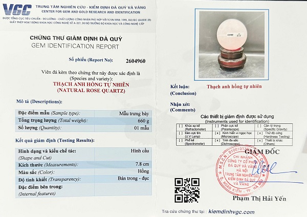 Kèm đầy đủ chứng thư kiểm định đá quý do trung tâm kiểm định đá quý Việt Nam cấp