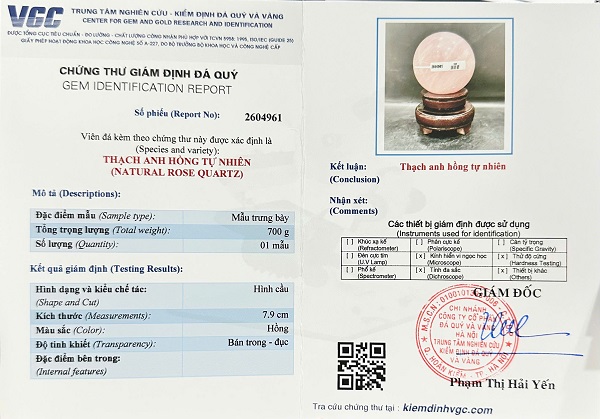 Kèm đầy đủ chứng thư kiểm định đá quý do trung tâm kiểm định đá quý Việt Nam cấp