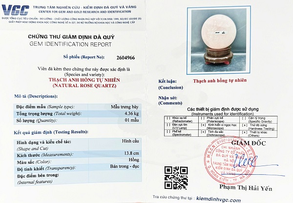 Kèm đầy đủ chứng thư kiểm định đá quý do trung tâm kiểm định đá quý Việt Nam cấp