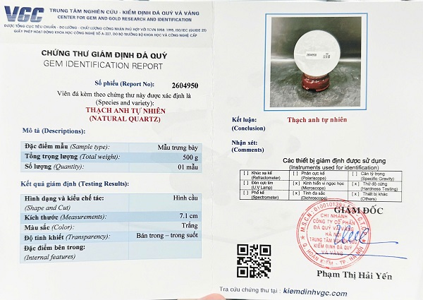 Kèm đầy đủ chứng thư kiểm định đá quý do trung tâm kiểm định đá quý Việt Nam cấp