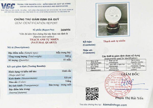 Kèm đầy đủ chứng thư kiểm định đá quý do trung tâm kiểm định đá quý Việt Nam cấp