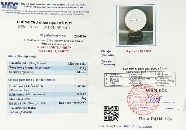 Quả cầu đá thạch anh trắng phong thủy - Kèm chứng thư kiểm định đá quý thiên nhiên