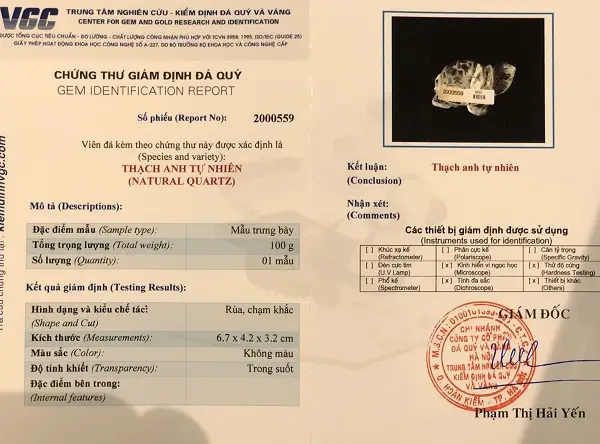 Kèm đầy đủ chứng thư kiểm định đá quý do trung tâm kiểm định đá quý Việt Nam cấp