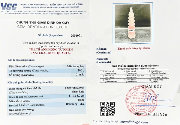 Tháp văn xương đá thạch anh hồng - Kèm chứng thư giám định đá quý