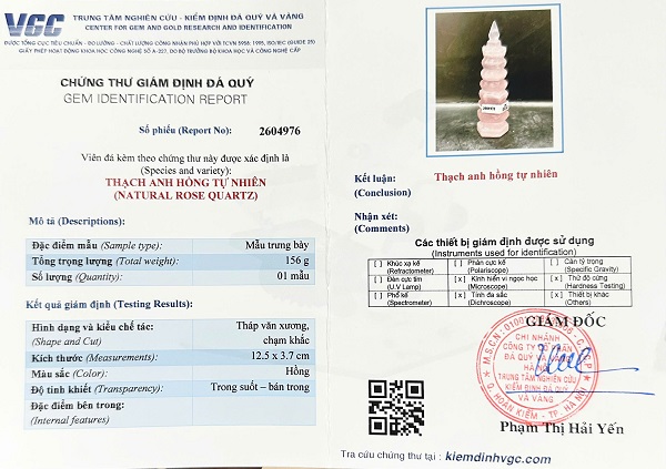 Tháp văn xương đá thạch anh hồng - Kèm chứng thư giám định đá quý