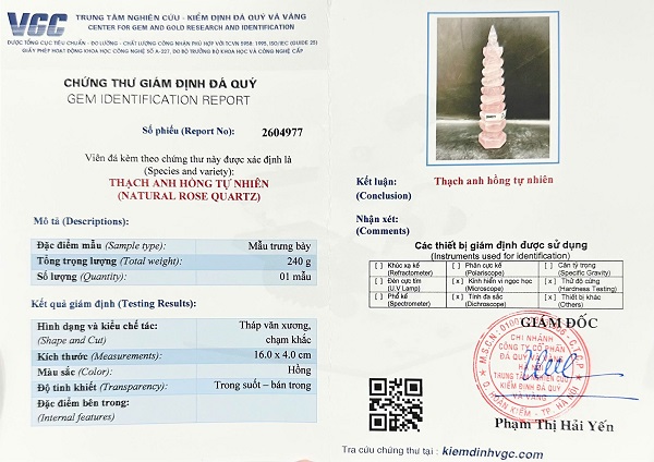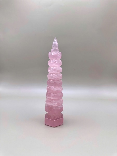 Tháp văn xương đá thạch anh hồng - Kèm chứng thư giám định đá quý