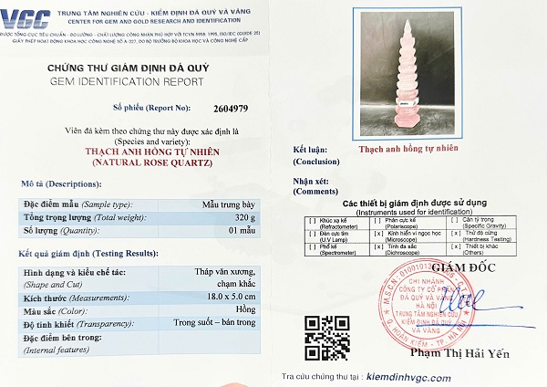Tháp văn xương đá thạch anh hồng - Kèm chứng thư giám định đá quý