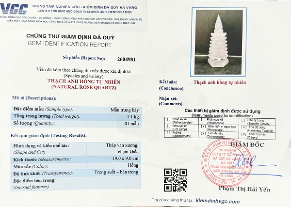 Kèm đầy đủ chứng thư kiểm định đá quý do trung tâm kiểm định đá quý Việt Nam cấp
