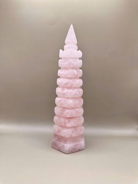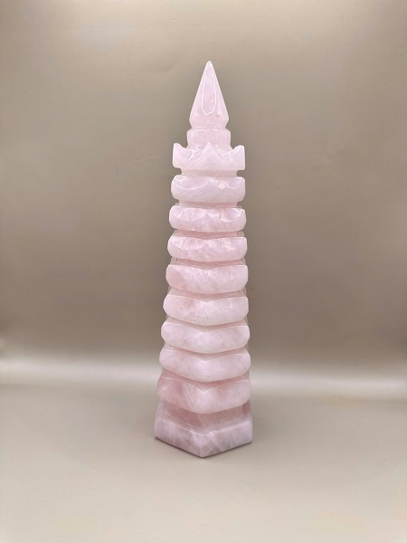 Tháp văn xương đá thạch anh hồng - Kèm chứng thư giám định đá quý