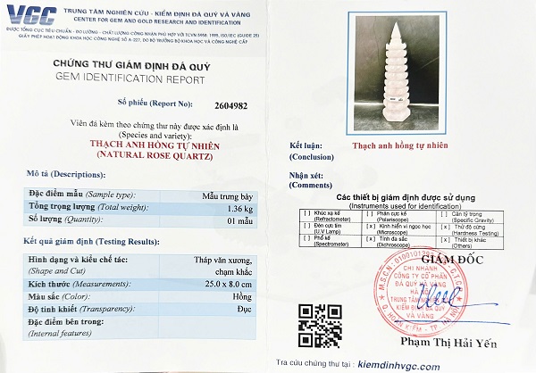 Kèm đầy đủ chứng thư kiểm định đá quý do trung tâm kiểm định đá quý Việt Nam cấp