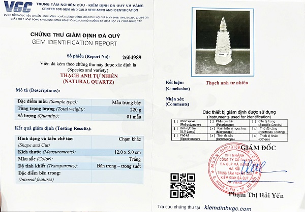 Kèm đầy đủ chứng thư kiểm định đá quý do trung tâm kiểm định đá quý Việt Nam cấp
