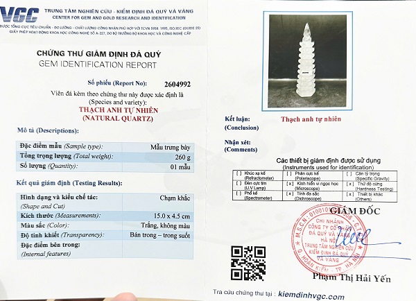 Kèm đầy đủ chứng thư kiểm định đá quý do trung tâm kiểm định đá quý Việt Nam cấp