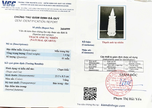 Kèm đầy đủ chứng thư kiểm định đá quý do trung tâm kiểm định đá quý Việt Nam cấp