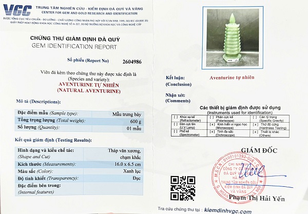 Kèm đầy đủ chứng thư kiểm định đá quý do trung tâm kiểm định đá quý Việt Nam cấp