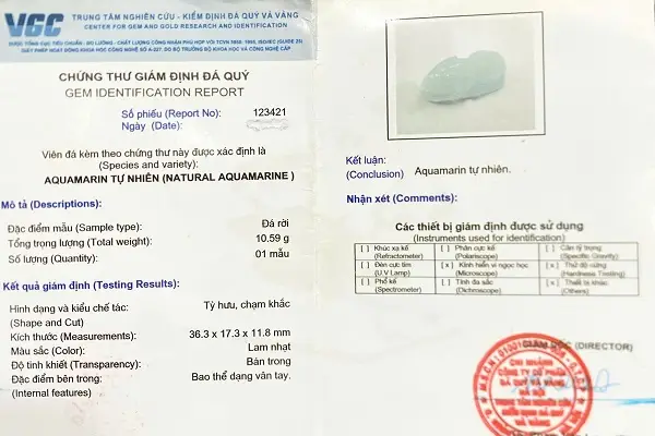 Kèm đầy đủ chứng thư kiểm định đá quý do trung tâm kiểm định đá quý Việt Nam cấp theo tiêu chuẩn quốc tế