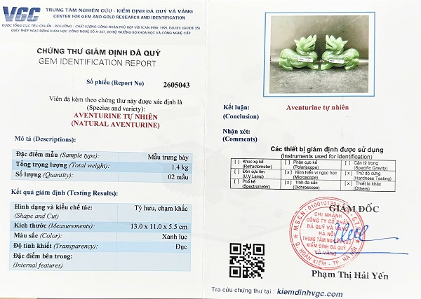 Kèm đầy đủ chứng thư kiểm định đá quý do trung tâm kiểm định đá quý Việt Nam cấp theo tiêu chuẩn quốc tế