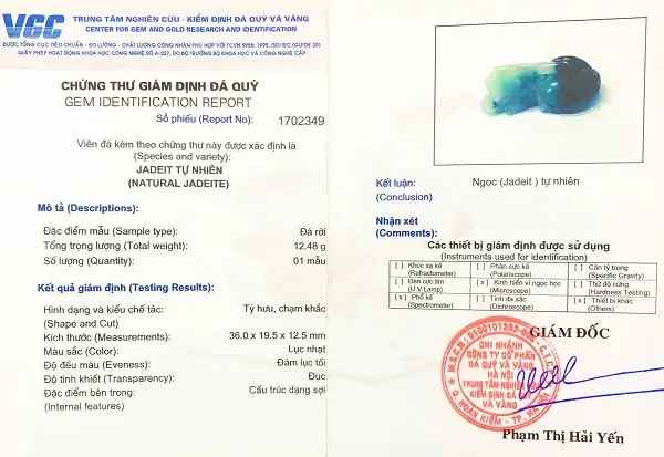 2. Kèm đầy đủ chứng thư kiểm định đá quý do trung tâm kiểm định đá quý Việt Nam cấp theo tiêu chuẩn quốc tế