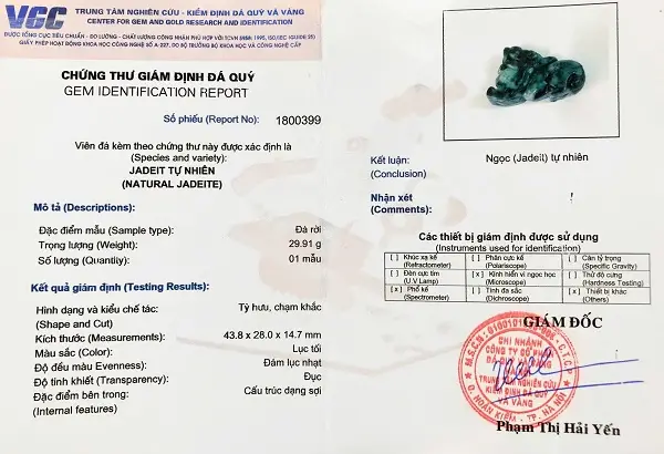 4. Quý khách hoàn toàn có thể mang sản phẩm ngọc phỉ thúy mua của chúng tôi đến các Trung tâm kiểm định khác trên toàn quốc kiểm định lại, nếu sai chúng tôi xin chịu trách nhiệm