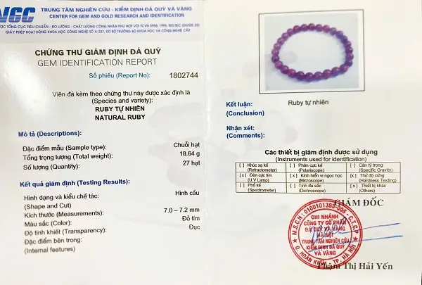 Kèm đầy đủ chứng thư kiểm định đá quý do trung tâm kiểm định đá quý Việt Nam cấp