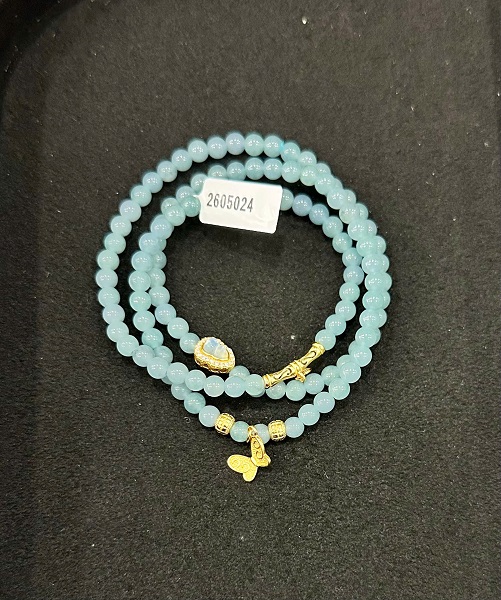 Quý khách đang xem sản phẩm vòng tay ngọc phỉ thúy lam môn phối charm bạc si vàng cao cấp