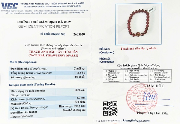 Quý khách hoàn toàn có thể mang sản phẩm vòng thạch anh dâu tây của chúng tôi đến các Trung tâm kiểm định khác trên toàn quốc kiểm định lại, nếu sai chúng tôi xin chịu trách nhiệm